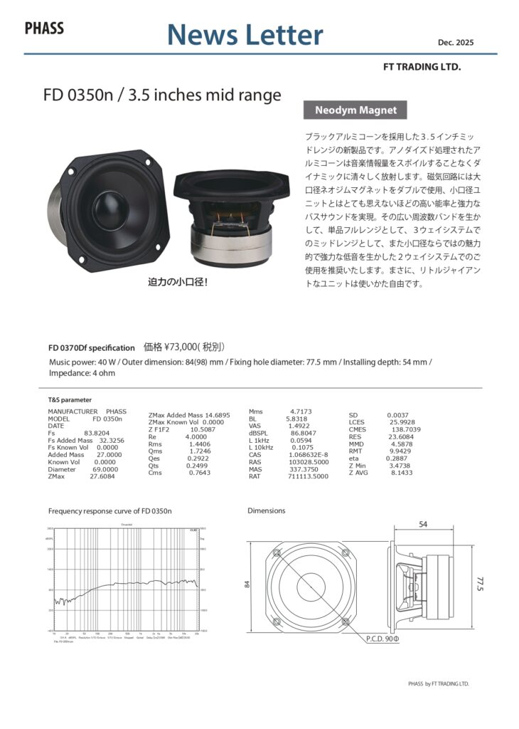 FD0350NPHASSPHASSスピーカーPHASSデモカーPHASS試聴soundgaiaカーオーディオカーオーディオプロショップカーオーディオ専門店カーオーディオ静岡サウンドガイアデッドニングファス